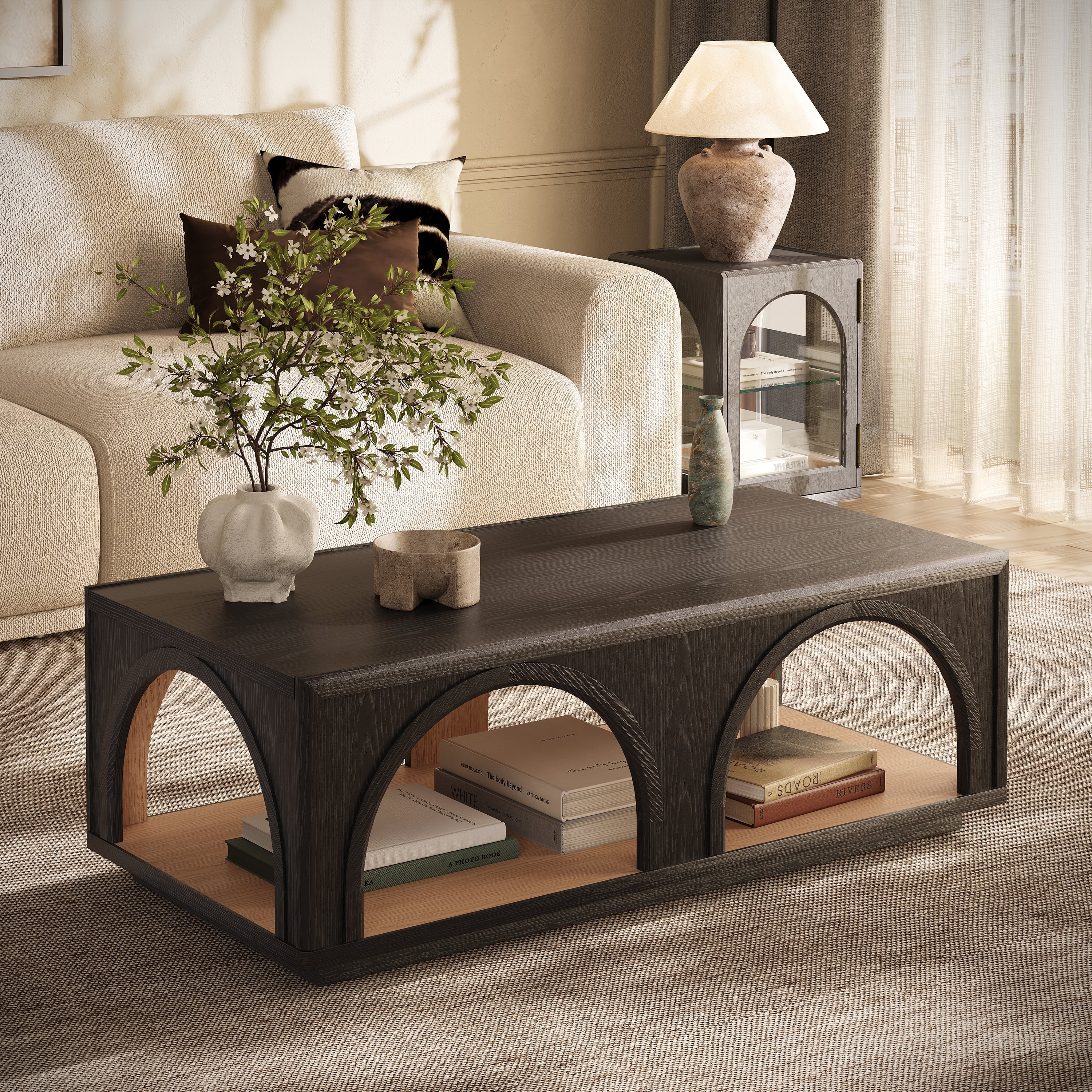 Inspired by the grand archways of medieval European castles, the Tatum Coffee Table reimagines architectural elegance through a modern, modular lens. Its smooth arch design blends natural wood warmth with sleek metal details, creating a statement piece that is both artistic and functional.
