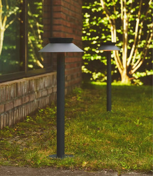 Illuminate your outdoor spaces with understated elegance using the Orbit Stem Outdoor Floor Lamp. Featuring a sleek cylindrical stem and a distinctive flared halo-style shade, it casts a soft, downward glow that beautifully defines garden paths, walkways, and courtyards.
