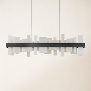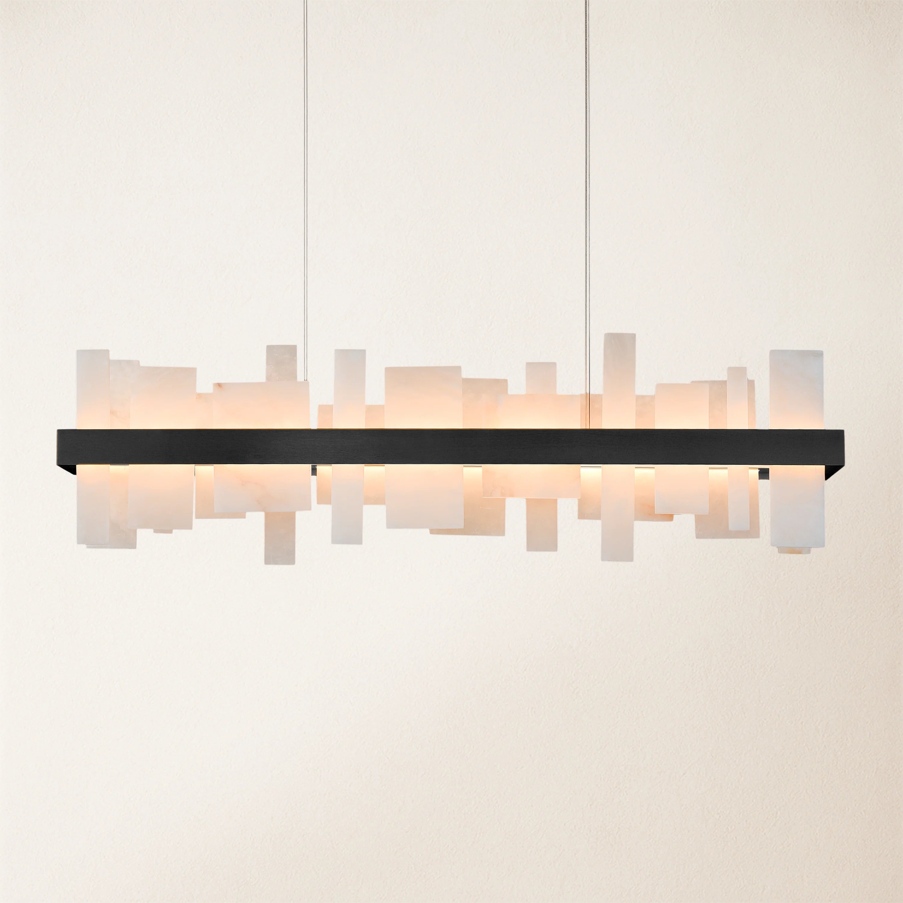 The Nocturne Alabaster Series features a sculptural halo of hand-cut Spanish alabaster panels, gently diffusing a soft, ambient glow. Its minimalist profile and warm luminosity make it ideal for dining rooms, living areas, or entryways, while the naturally veined stone ensures every fixture is uniquely beautiful. Designed for adjustable suspension and sloped-ceiling compatibility, it suits both modern and classic interiors.