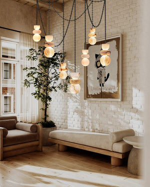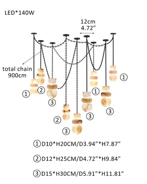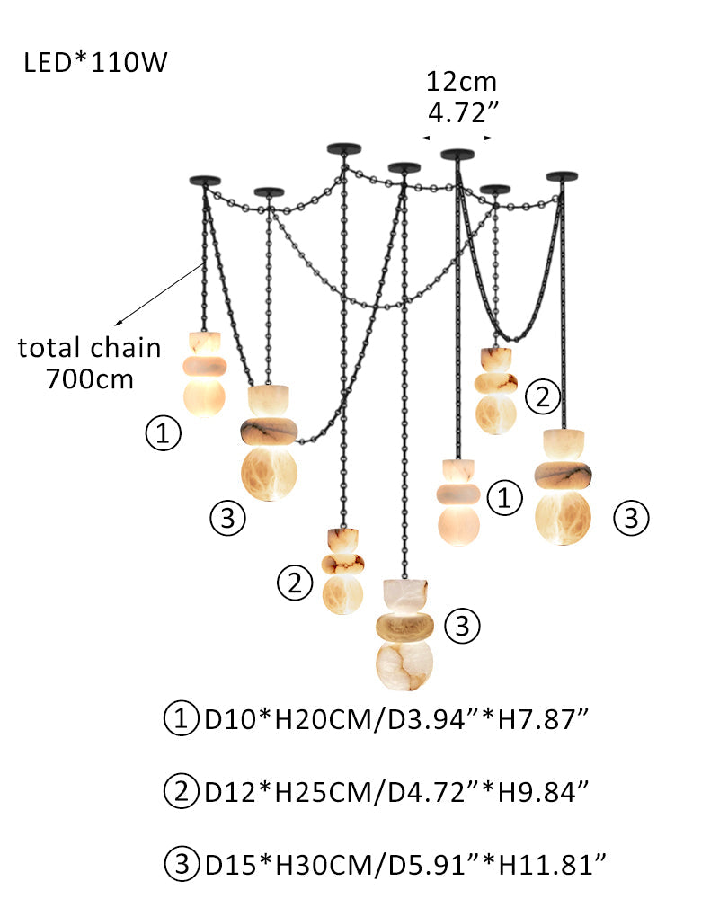 7 lights 6" Wide Multi Light LED Pendant Light Fixtures white alabaster indoor lighting