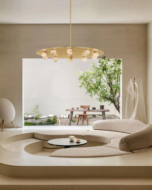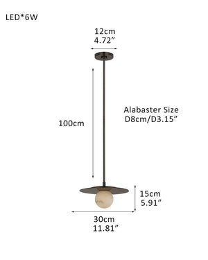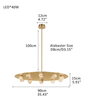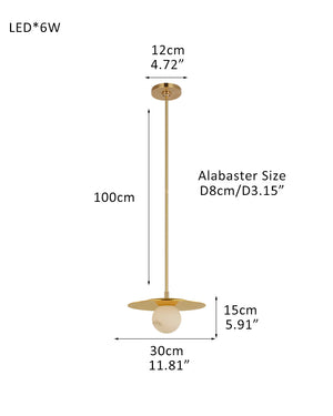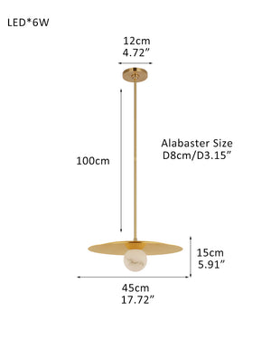 Alabaster Globes LED Disc Pendant Light in Lacquered Brass/Bronze Stainless Frame