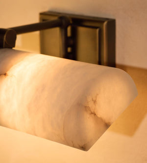 Mounted on a blackened brass frame, honed alabaster shades can be adjusted to direct the light onto your artworks.