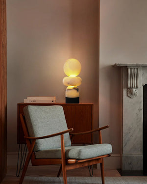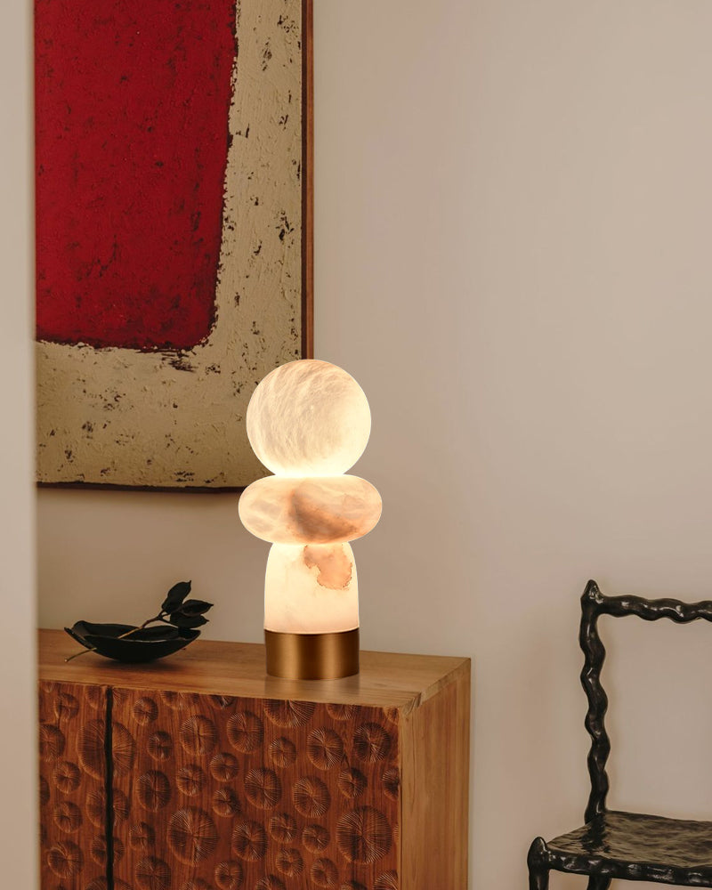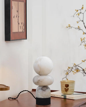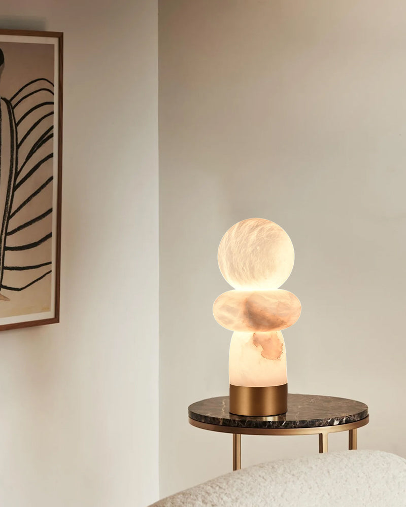 - Black & Brass Base offer modern contrast, highlighting the marble shade.