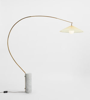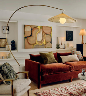 Taking its cues from 180 House, the Arc floor lamp is a great option for larger living spaces. Anchored by a weighty piece of solid Carrera marble, it has an elongated, arched frame in an antique brass finish and ascends into a hand-pleated parchment shade. The contrasting textures complement both traditional and modern interiors.
