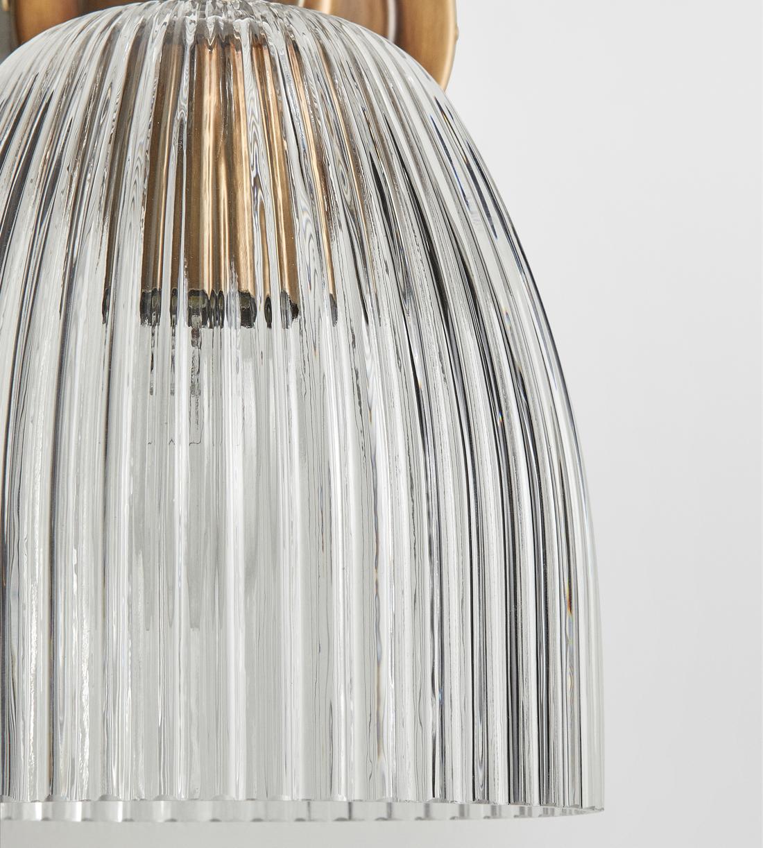 The Benny wall light has a vintage feel that references the styles at Soho Warehouse, LA. The adjustable light has a ribbed glass shade, and designed with antique brass finish arms that move to suit your lighting needs. Fit it by your bedside to create directional light for late-night reading.