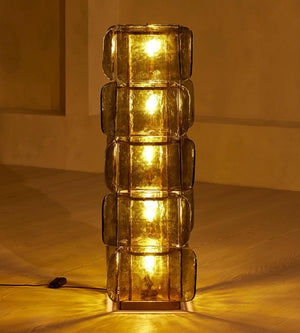 Made using a tessellation of curved, molded glass, this floor lamp has a bulb at every level for an even, warm glow.