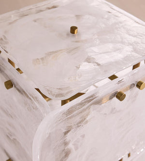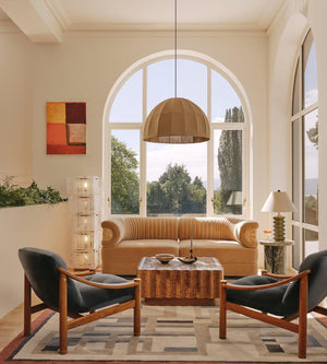 A tessellation of curved, moulded glass features a bulb fitted at every level for an even, warm glow.