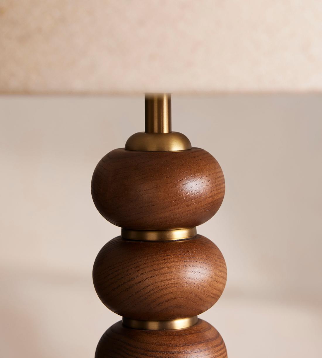 Originally designed for Soho House Rome, the Greyson floor lamp features a stacked, stained oak column with antique brass discs slotted in between for a contrasting finish. The classic floor lamp is complete with a slim, natural linen shade. Pair with our Greyson table lamp to mirror the cosy club spaces at Soho House Rome.