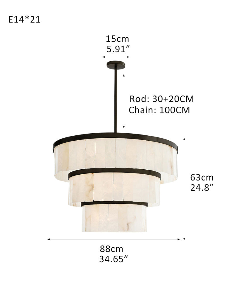 Handcrafted Windham Alabaster Tier Round Chandelier In Brass/Black Finish