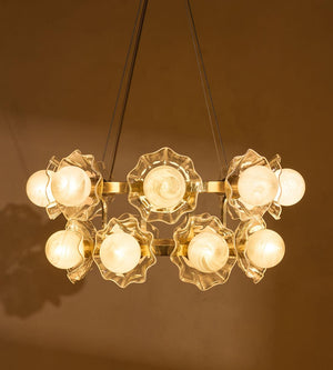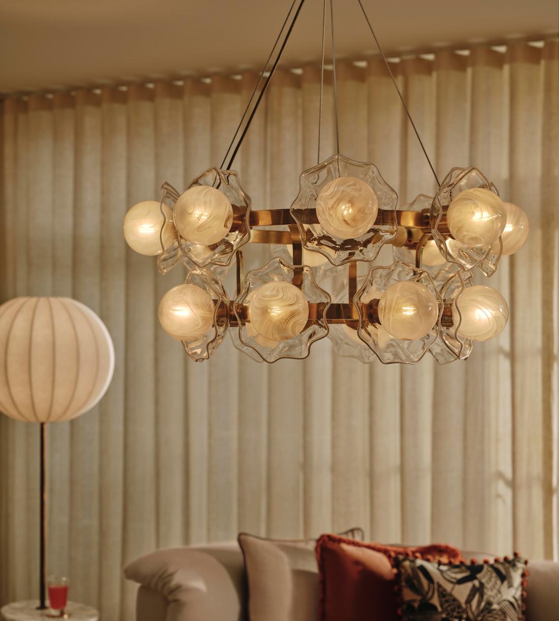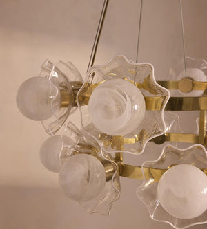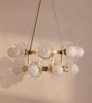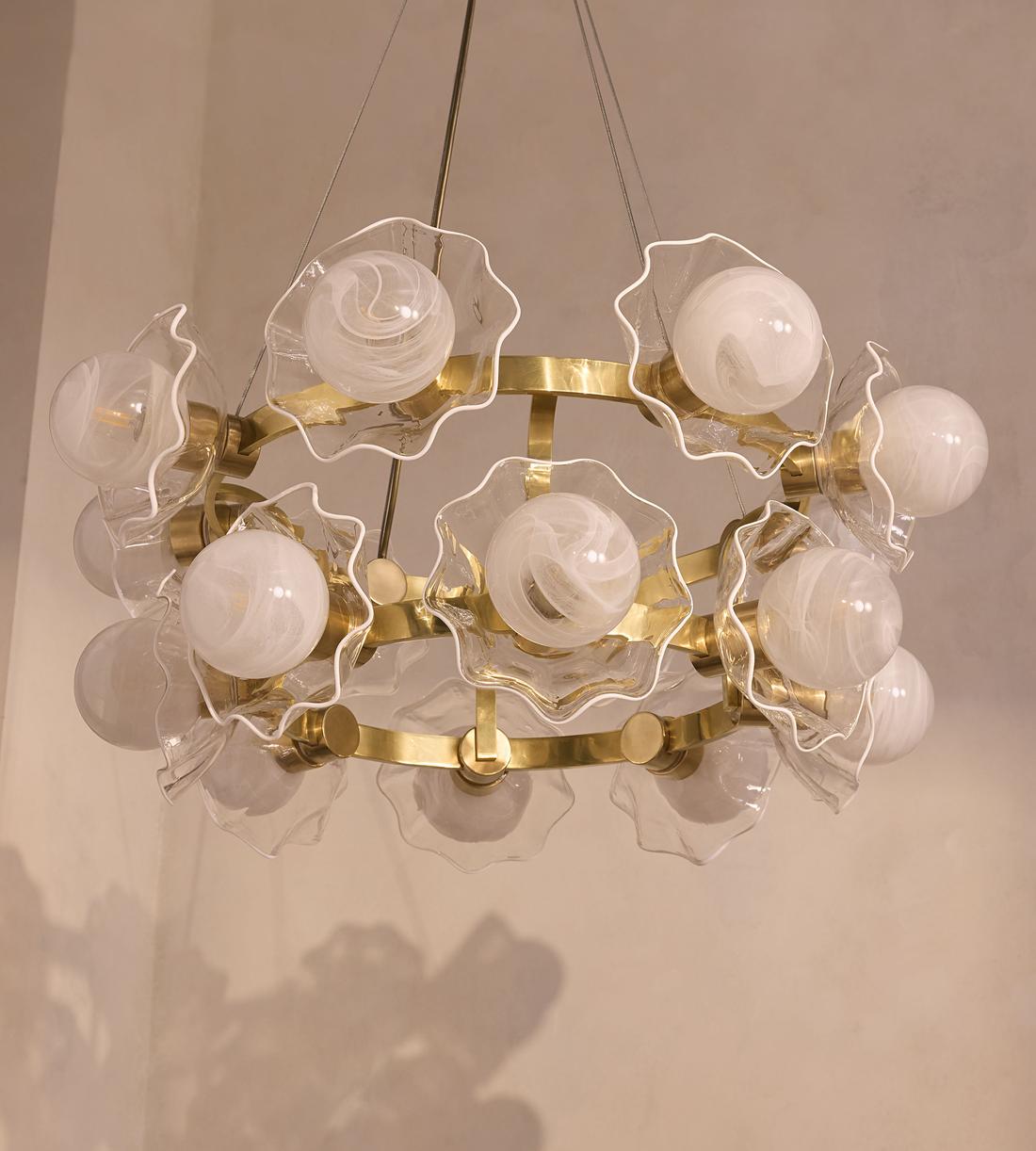 Double-layered glass creates a series of scalloped bases and orb-shaped bulbs for a statement design.
