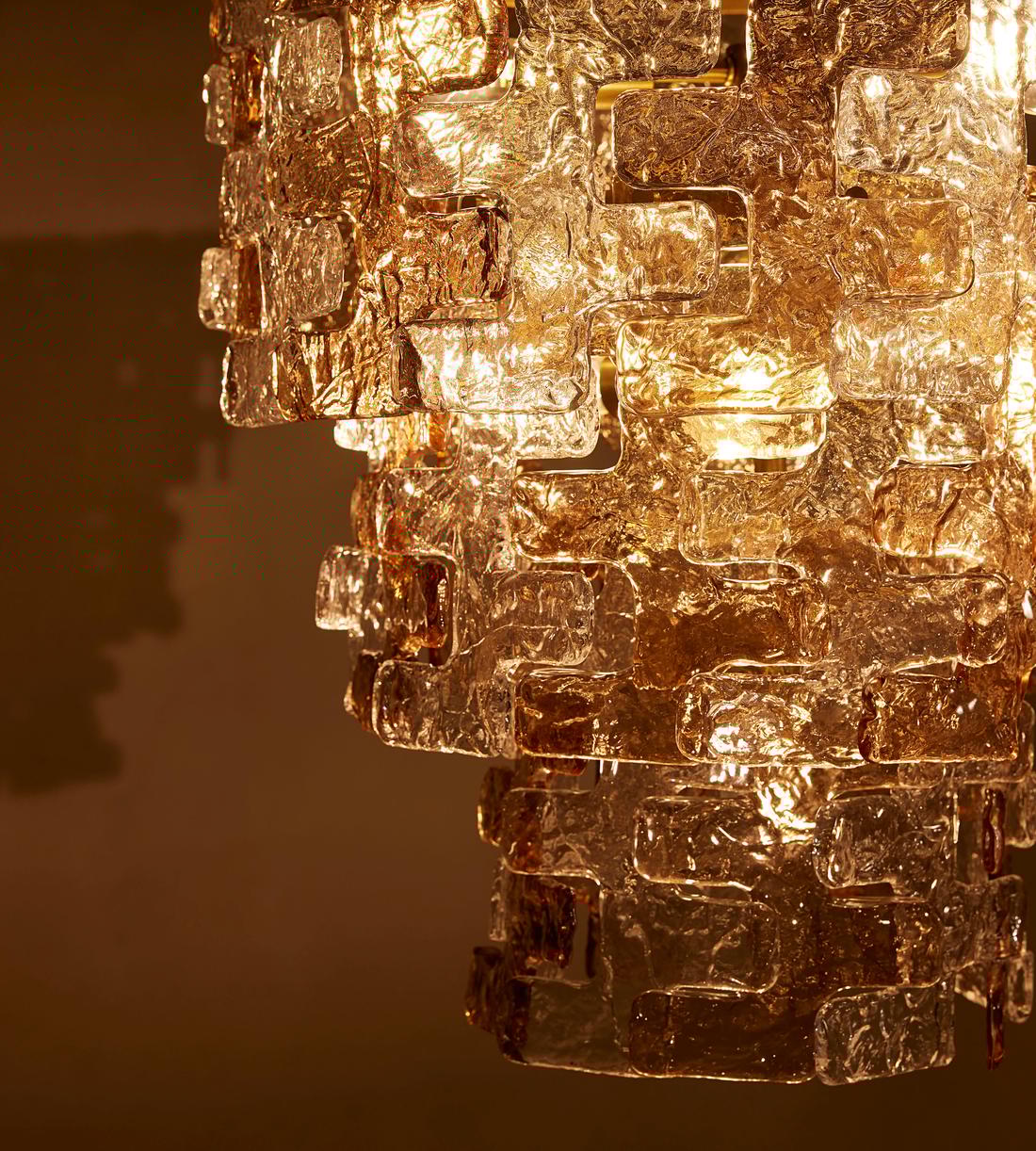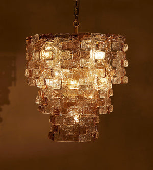 The tiered silhouette of this chandelier is made from individual pieces of textured glass.