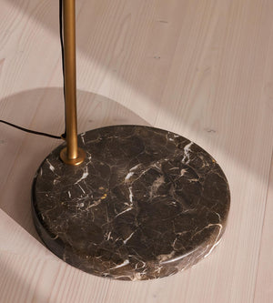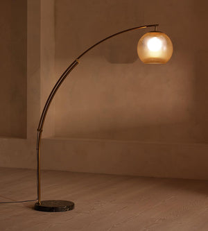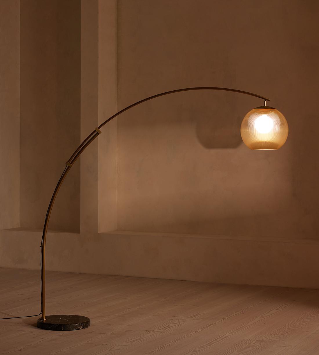 Taking its cues from 180 House, the Joni Arc floor lamp is a great option for large living spaces. Anchored by a honed Italian marble base, it has an elongated, arched frame in solid brass and ascends into a smoked amber globe. Also known as raw or uncoated brass, ours is brushed to give the lamp its antique aesthetic, and is left without a protective coating. It therefore ages over time and develops a beautiful patina that adds character to new and old homes alike.