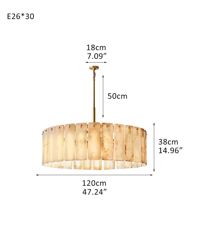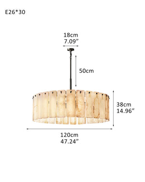 Lacquered Burnished Brass/Black LED Round Calamette Alabaster Lighting Collection 36" 48" 60"
