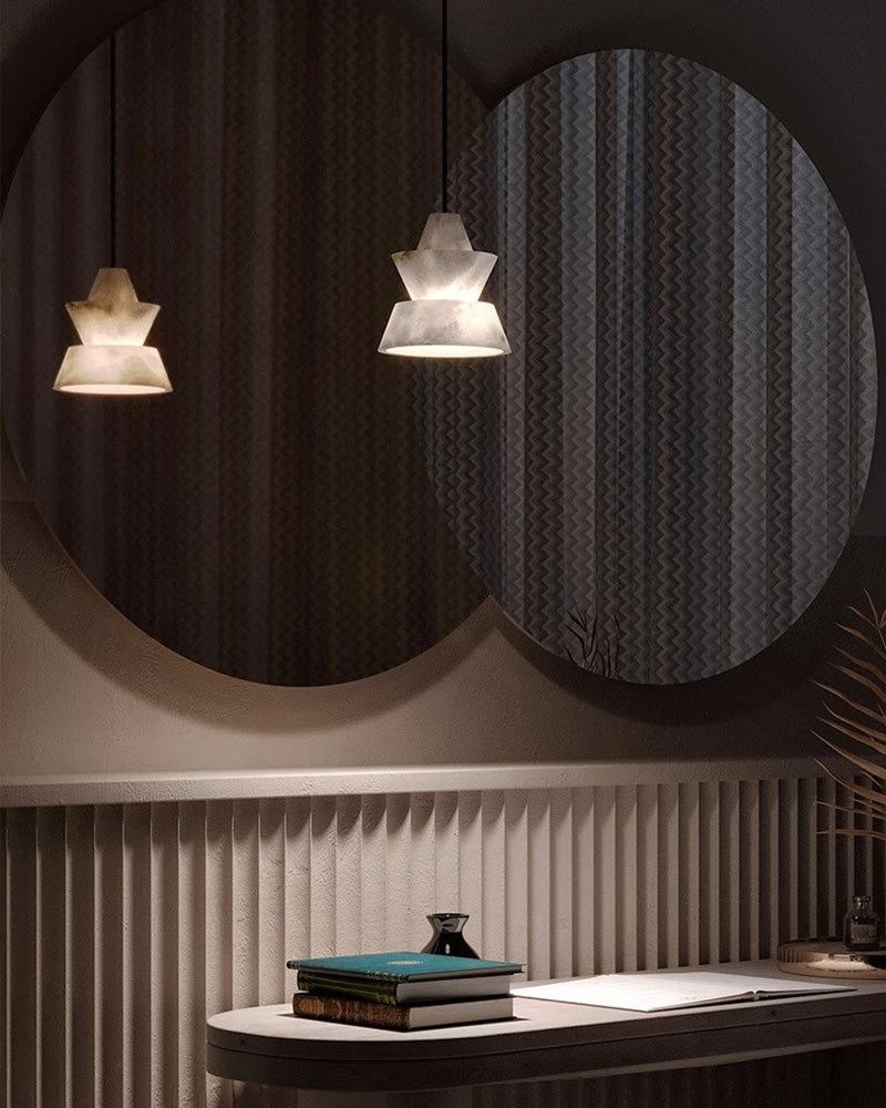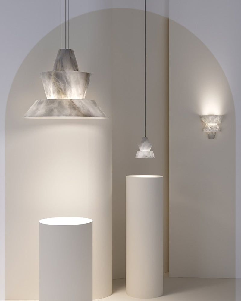 • Natural stone finish with subtle veining for timeless elegance and soft light diffusion.