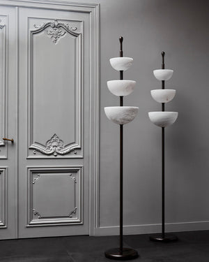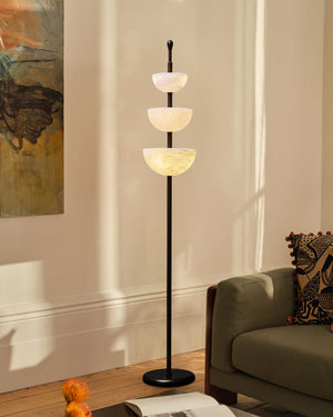 LED Bronze and Alabaster Triple Bowl Tall Floor Lamp 76in