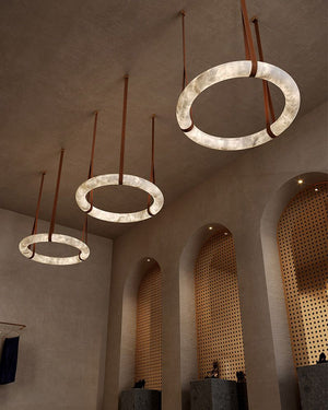 Leather Cable Alabaster Pendant Halo Ring Chandelier with Canopy