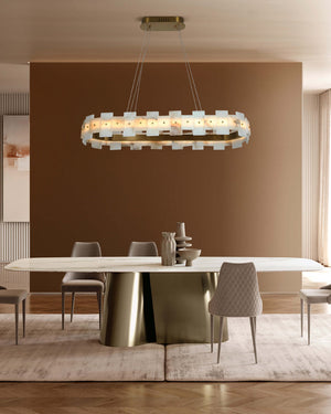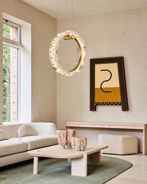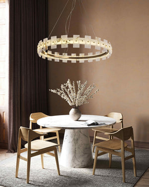 Marble Circle Hanging Lamp Minimalism White and Brass Alabaster Halo Chandelier Dining Table