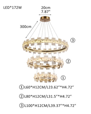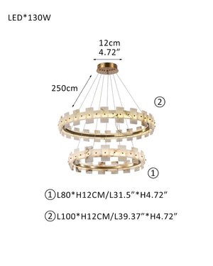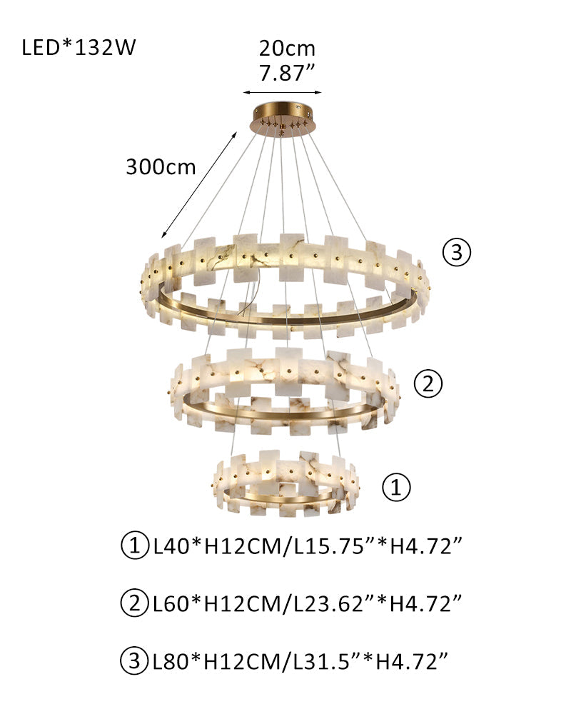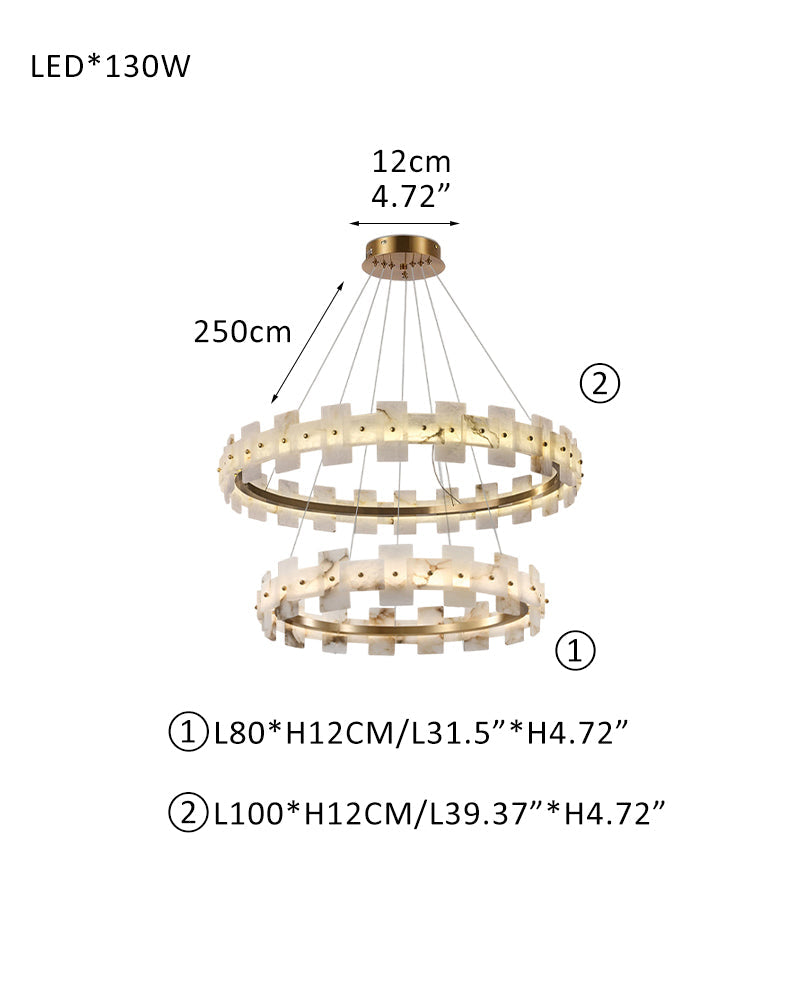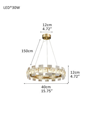 • Striking Halo Design: Features a contemporary Antique Brass ring frame holding vertical Alabaster panels.