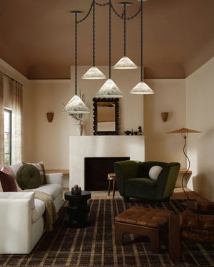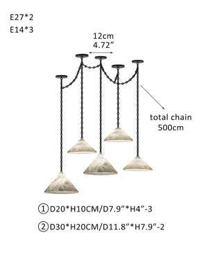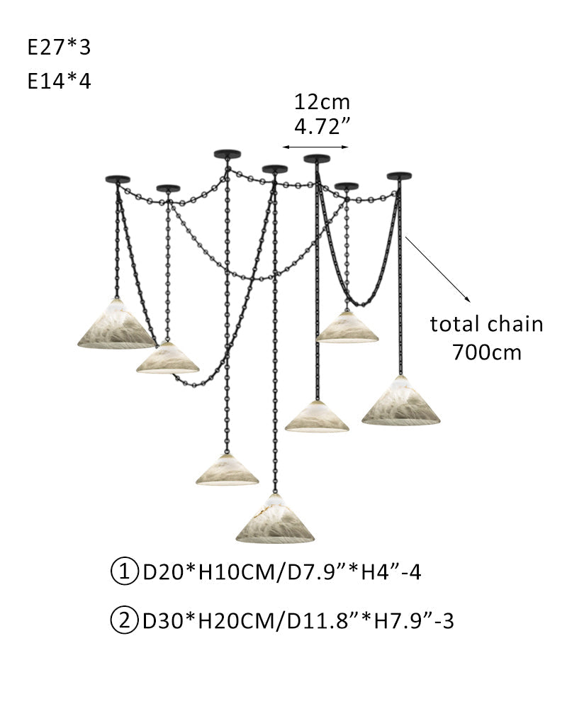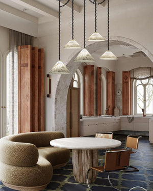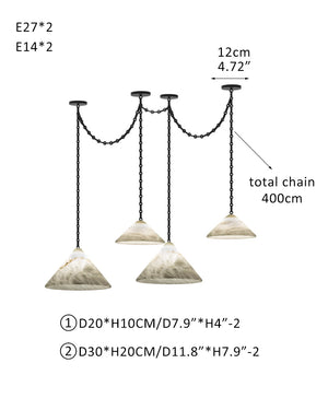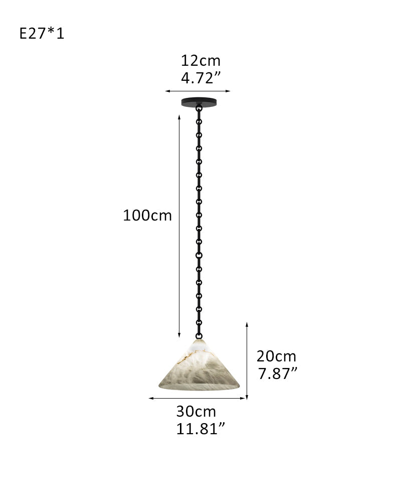 Medium 12" Conical Pendant White Alabaster Shade with Brass Chain for living room
