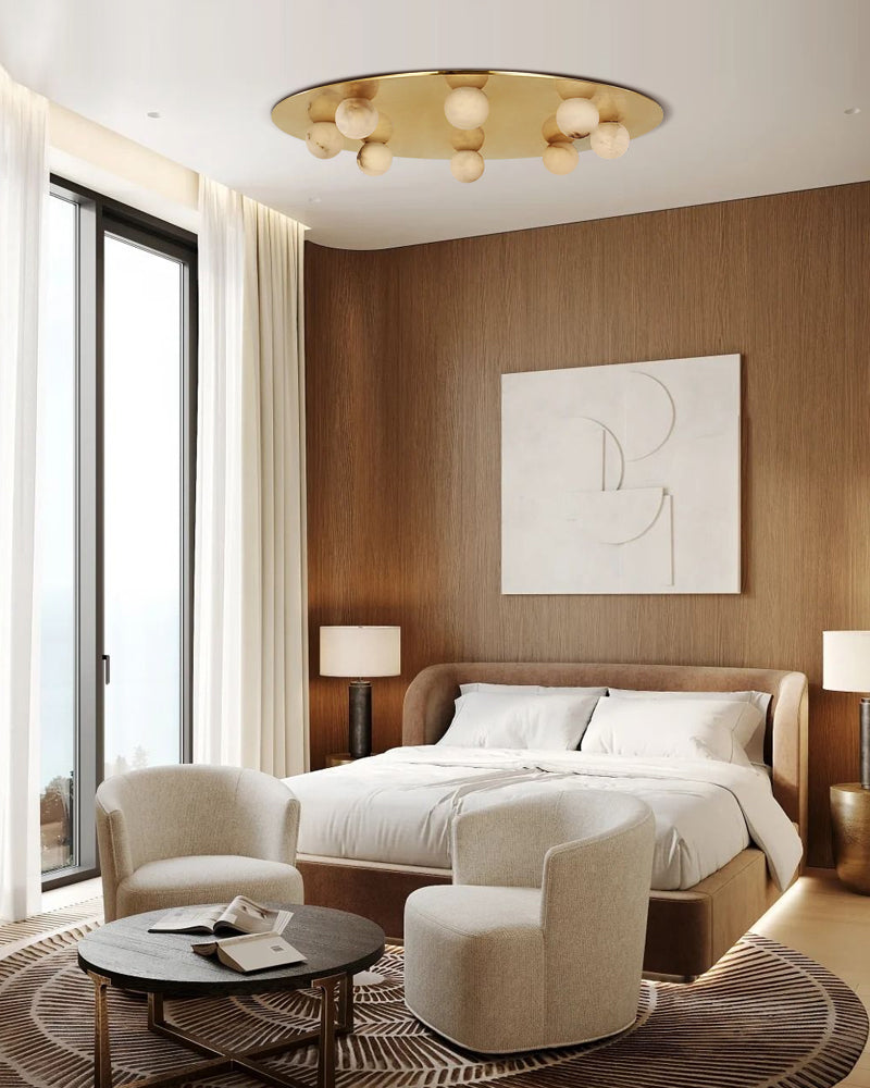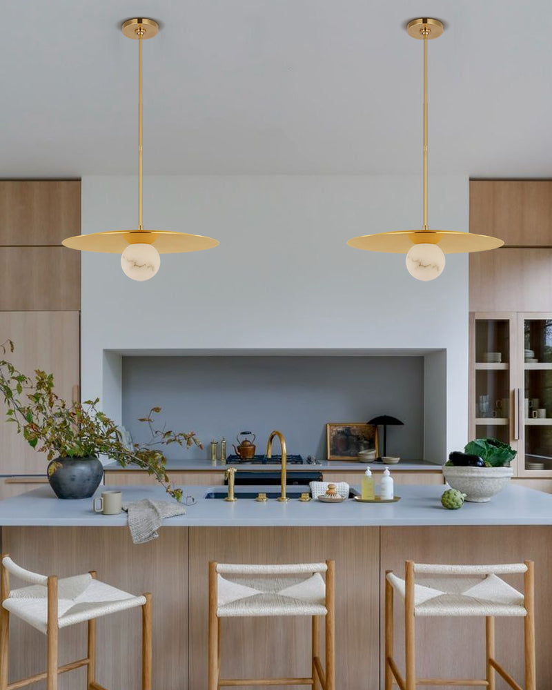 - Provides soft, glare-free illumination through an alabaster globe shade.