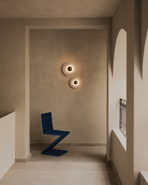 Modern Brass Hardwared Round Alabaster Conbination Plug-in Wall Lamp 10" Wide