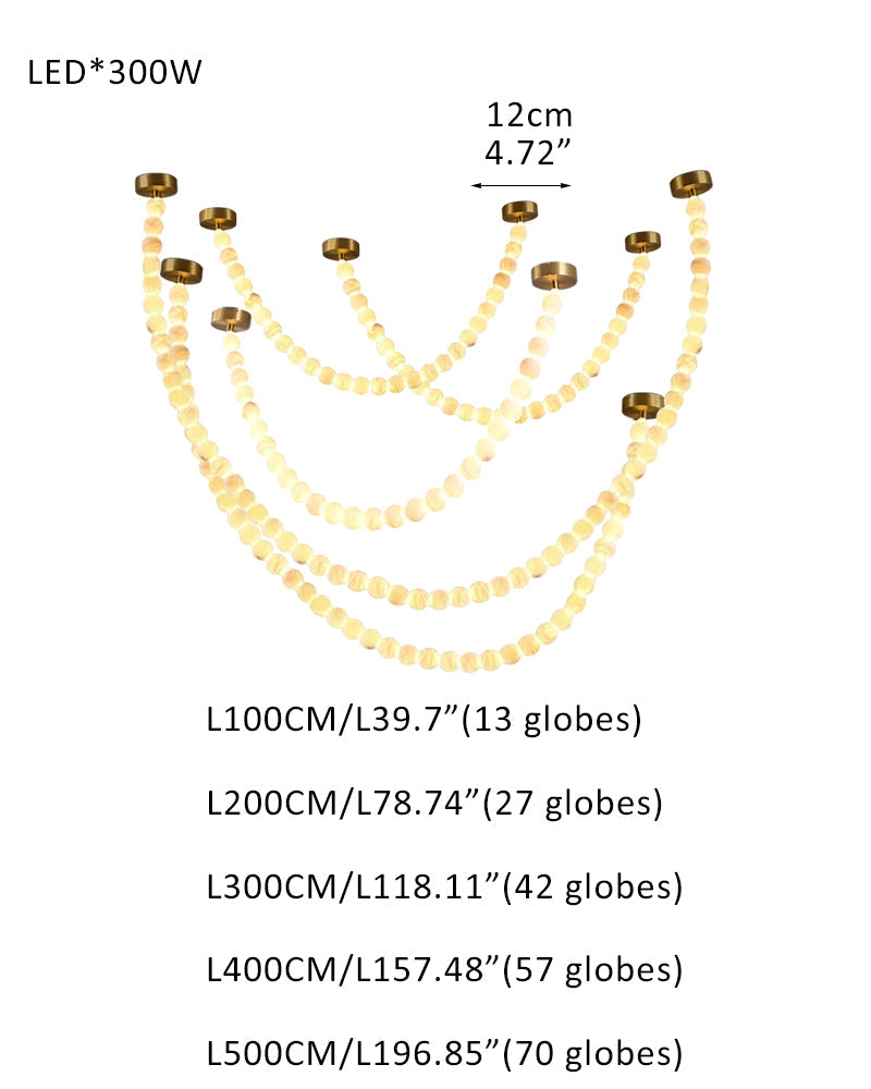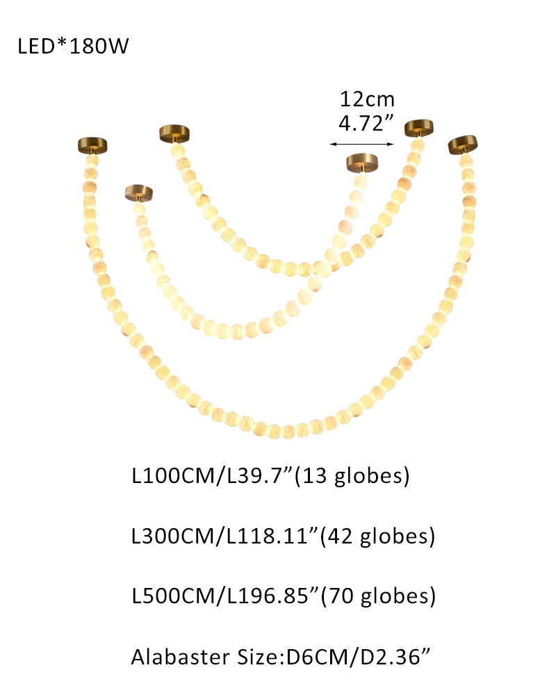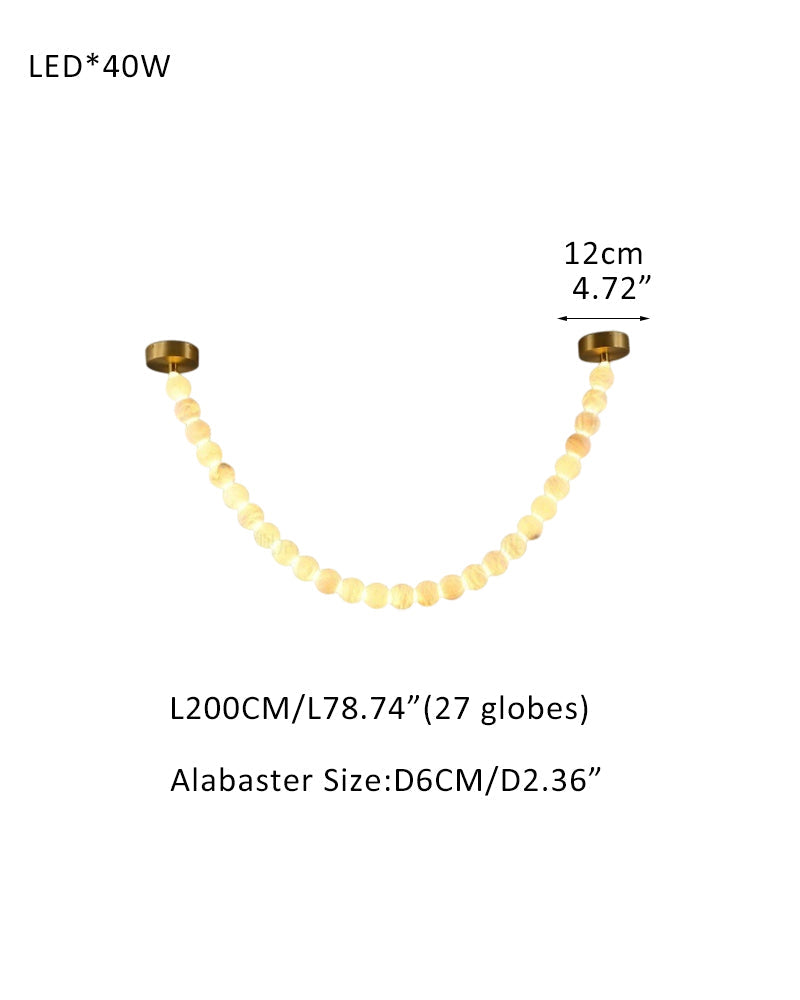 Modern LED Natural Alabaster Globes Beads Hanging Chandelier Indoor Lighting Fixture