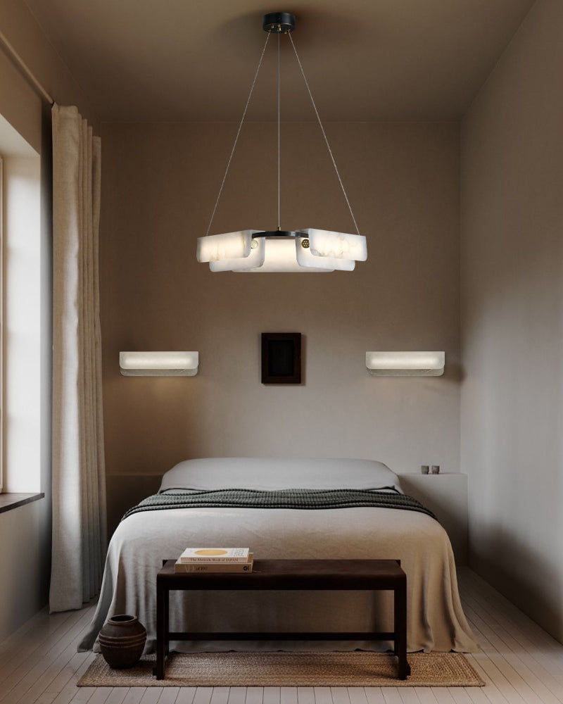 • White marble lampshades with natural veining for a unique and luxurious look.
