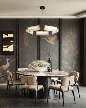 Modern Linear Black Metal Elegant Alabaster Pendant for Living room Lighting