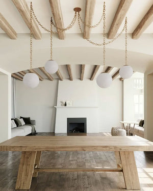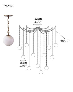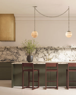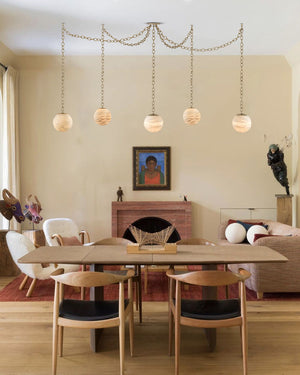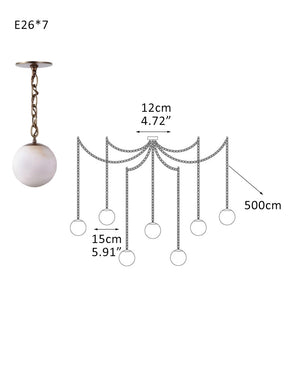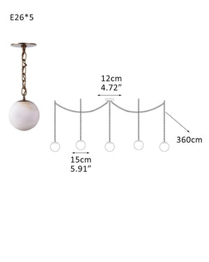 Modern Moon Alabaster Globe Swag Chandelier Wide 6" 8" 10" | Brass/Black Chain