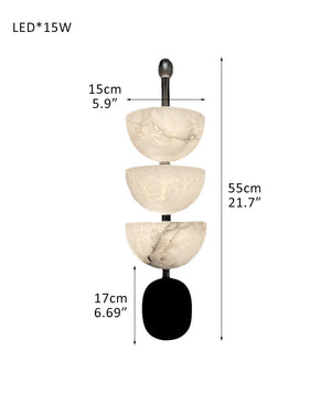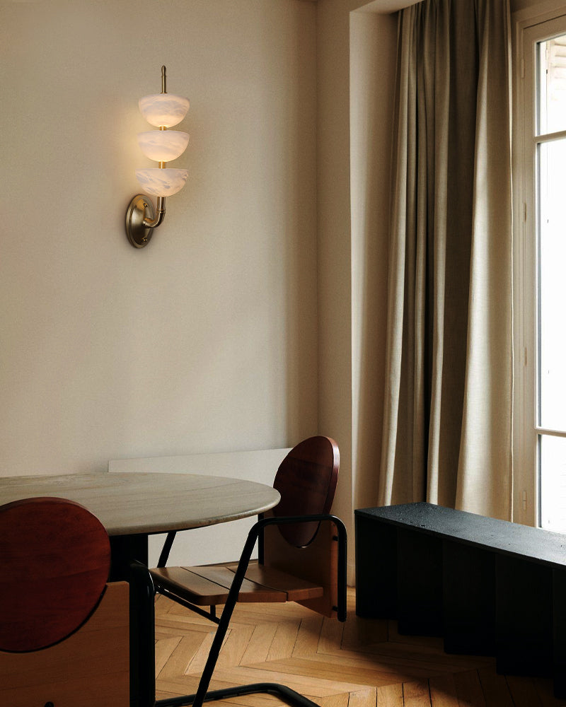 Modern Triple Alabaster Brass Stone Semi-Oval Wall Sconces 6in 15W