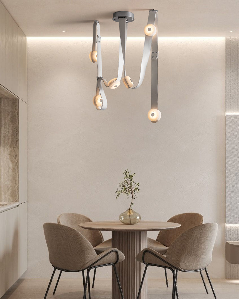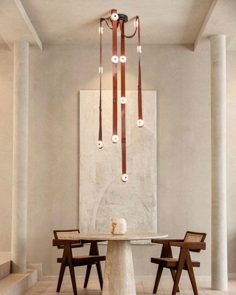 SNAPS combination LED Module Ceiling Alabaster Pendant Light with Extension Leather Straps