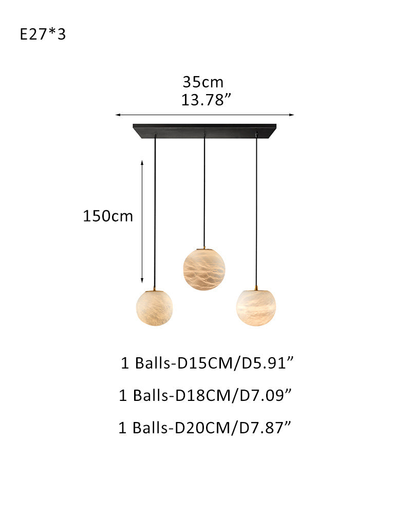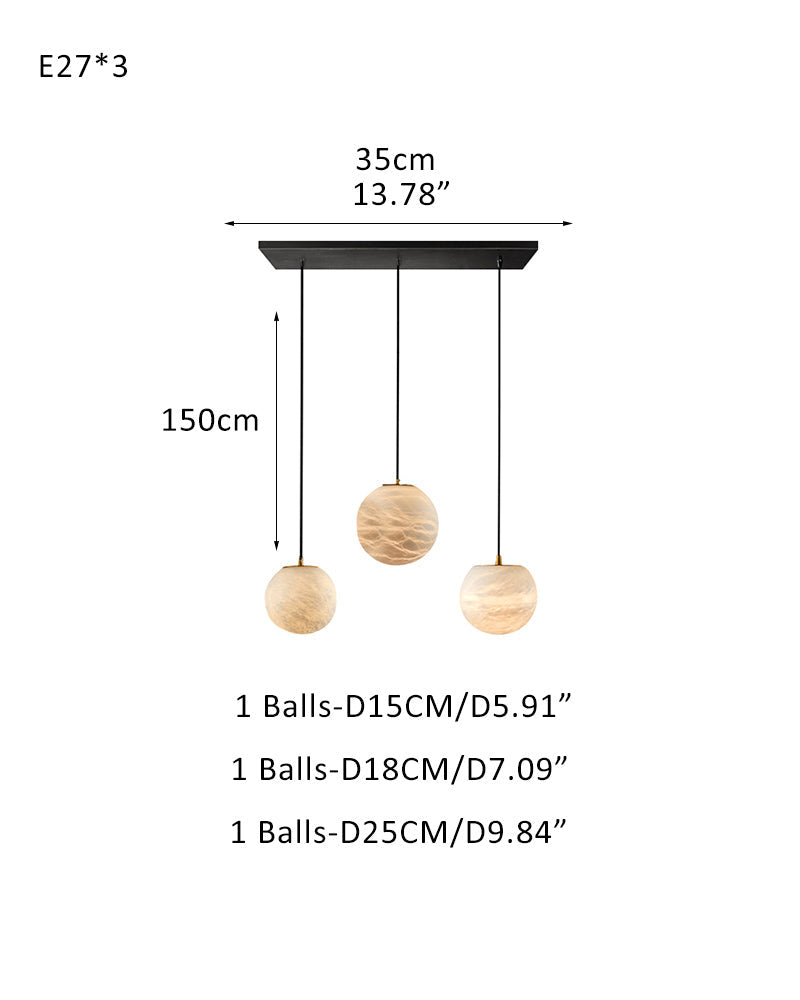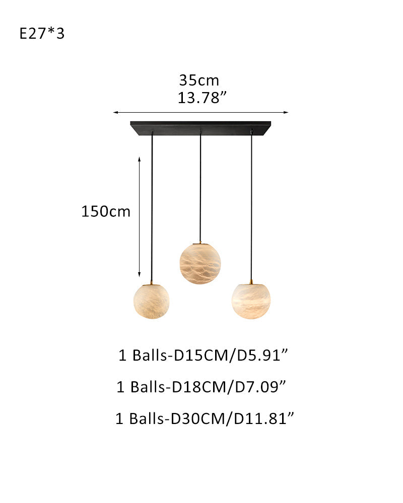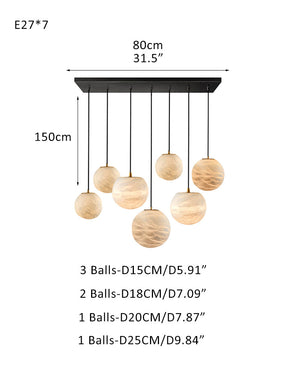 Art Decor Linear Moon Alabaster Globe Multi-Light Chandelier for Dining Kitchen Ambience