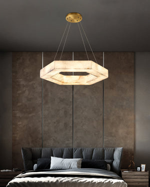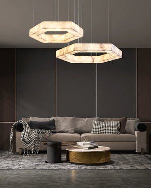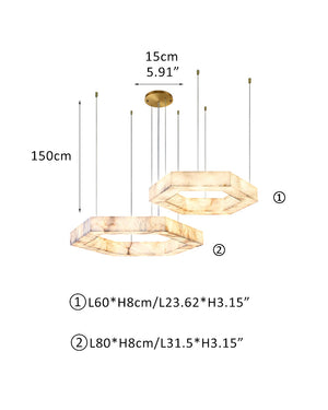 Hexagon Marble Pendant Lamp with adjustable cord & stepless dimming,20“24”31“40” Dia