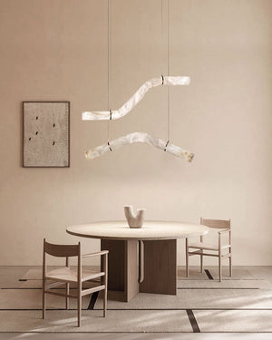 LED Linear Creative White Alabaster Liberty Hanging Light | Straight/Curved Design