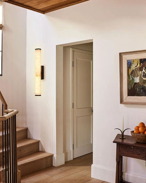 LED Copper Cylindrical Natural Marble Alabaster Wall Sconce Lamp,H30/40/50/60CM