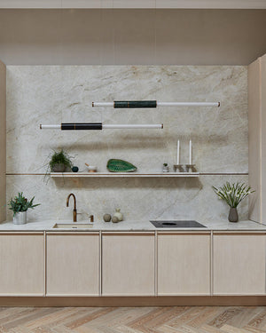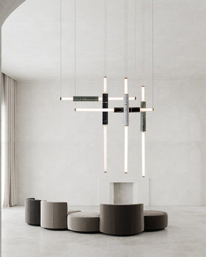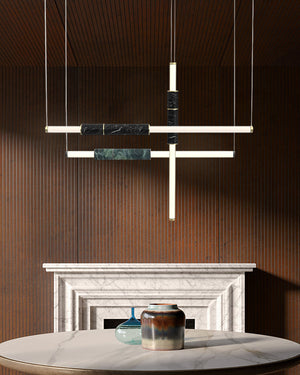 Linear Pipe Alabaster & Acrylic Pendant Light for dining room | vertically & horizontally
