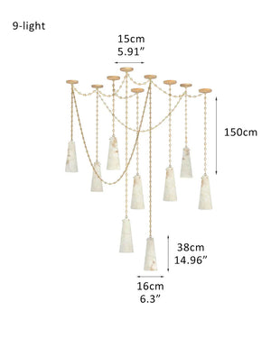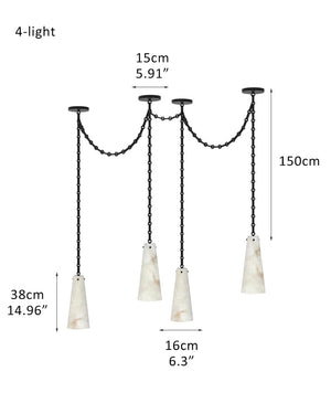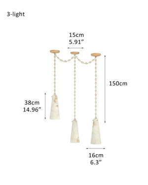 Modern Alabaster Chandelier 2 Light, Double Pendant with adjustable brass/black chain