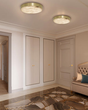 Modern Brass/Black Disc Alabaster Anvers Flush Mount Ceiling Light for Bedroom