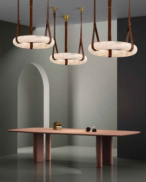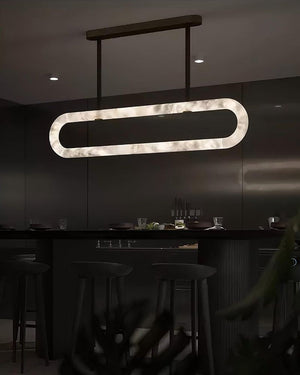 Modern Oval Alabaster LED Lacther Pendant Light Wide 32" 40" 48" for living room