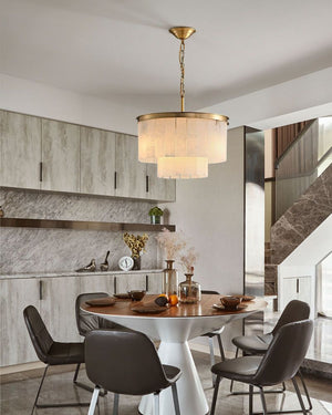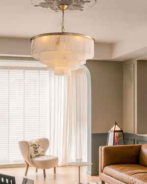 Modern White Alabaster Shade Multi-Layer Round Chandelier Lighting | Brass/Bronze Frame
