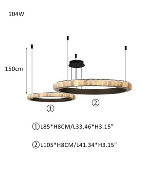 Natural Alabaster Marble Double Circular Chandelier | Black Steel Ring with long cord
