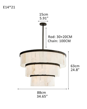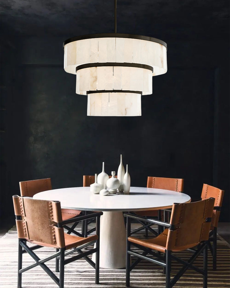 Premium Windham Natural Alabaster 3 Tier Round Chandelier Lighting Elegance Wide 24"