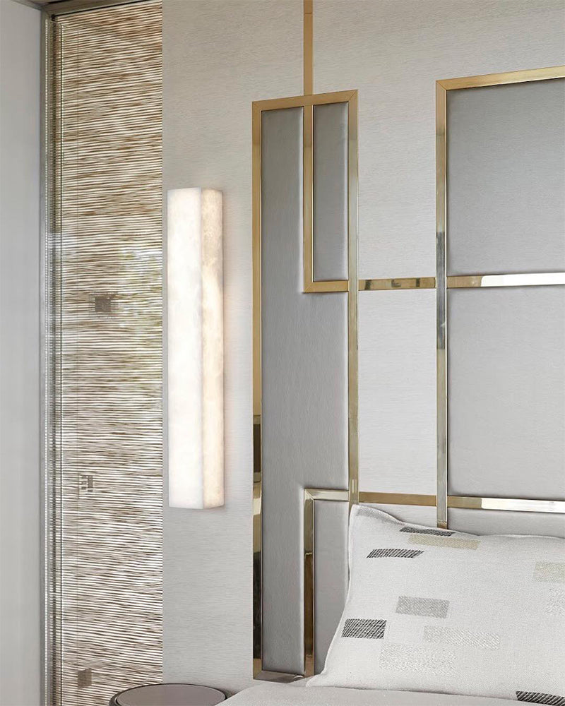 Rectangular Natural Semi-Translucent Alabaster Wall Lamp for Bath & Vanity