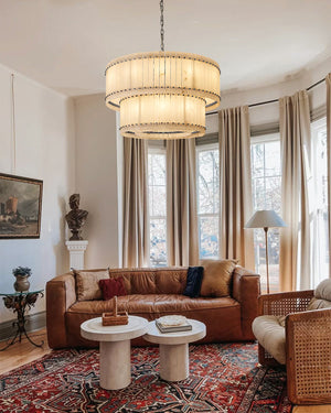 - Tiered alabaster panels + mid-century steel for bold yet graceful elegance.