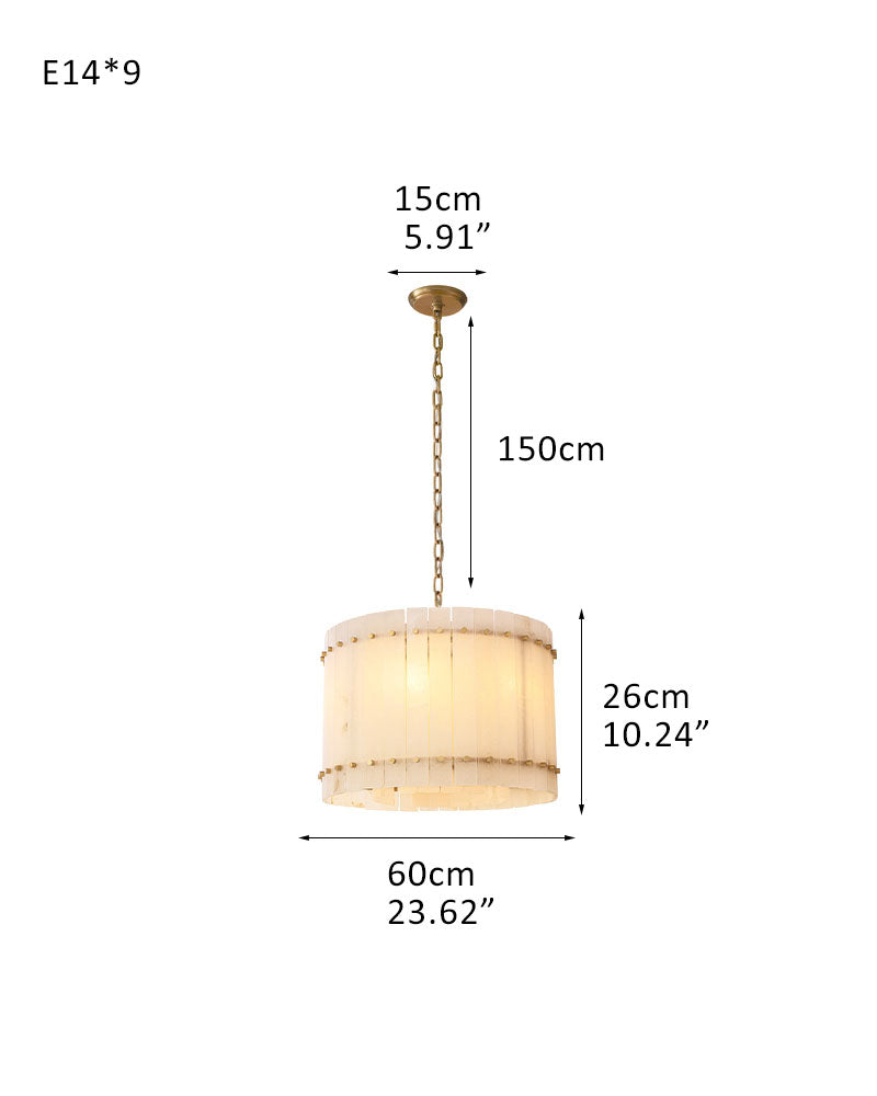 San Marco Alabaster Round 2-Tiered Drum Chandelier 23in 36in 47in 60in with Steel Frame