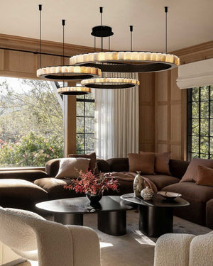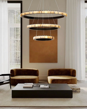 Home Luxury Alabaster Multi Ring Chandelier in black & gold frame | Cord Adjustment