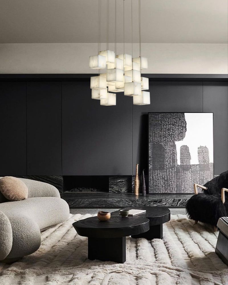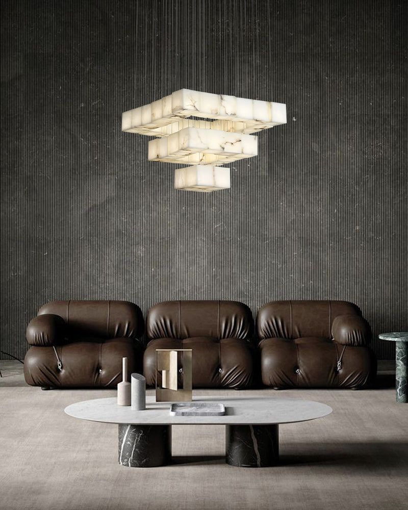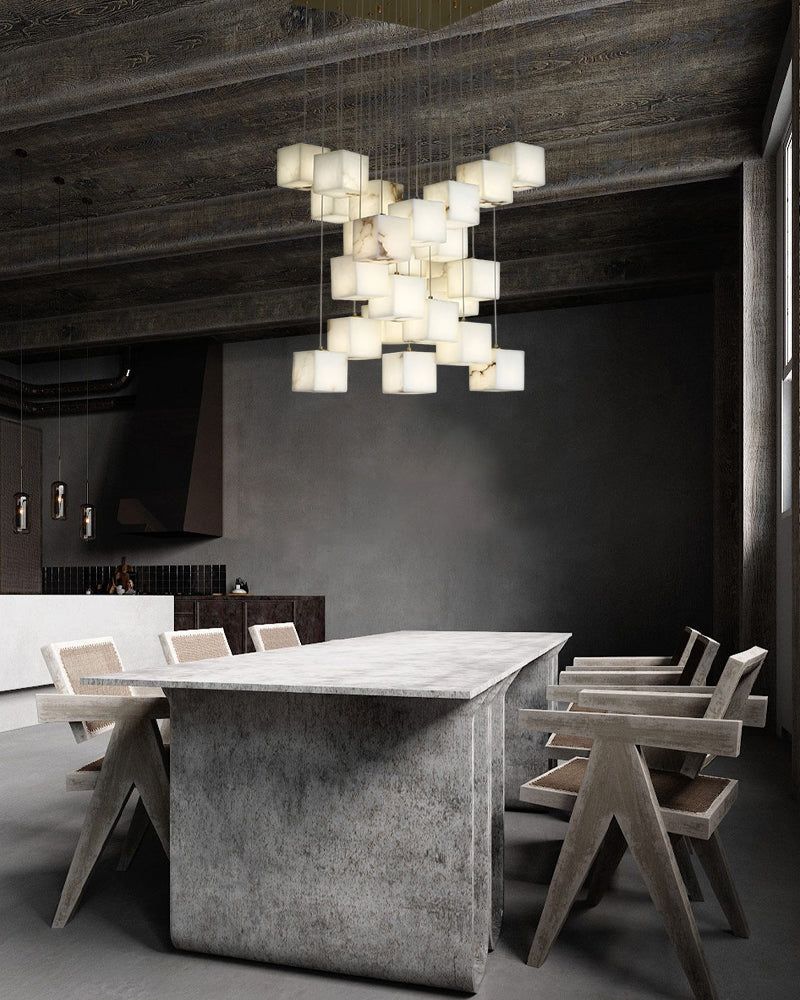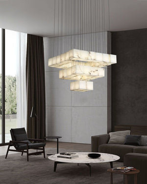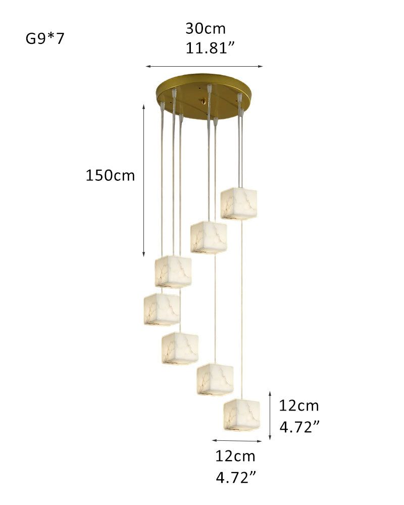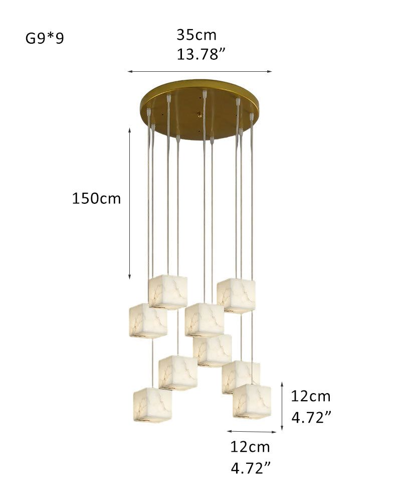 Square Cube Designer Lighting 5inch Nature Stone Alabaster Chandelier for Living room