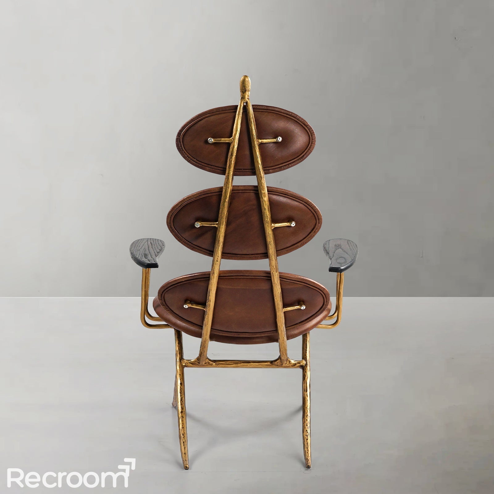 Thaddeo High Back Brown Leather Lounge Accent Chair