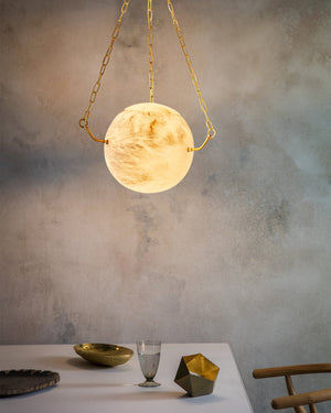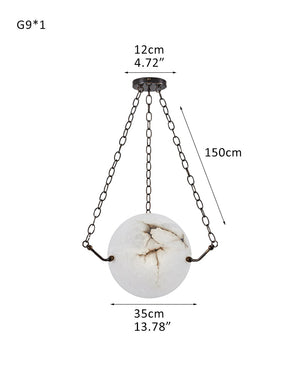 Vintage Alabaster Globe Pendant Light Fixture with brass/black adjustable chain 150cm