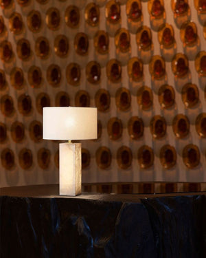 Home Vintage E27 Alabaster Marble Table Lamp 14“(D)24” (H)with fabric Linen lampshade